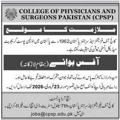 College of Physicians and Surgeons Jobs 2026 announce the Contract career opportunities for the post of See Below Ad in Sindh, Karachi for the fresh and experienced candidates on Contract basis who have Check Advertisement degree. Posted date of this post is 08/02/2026 and the last date is 23/02/2026. if you are eligible for this job apply before due date.