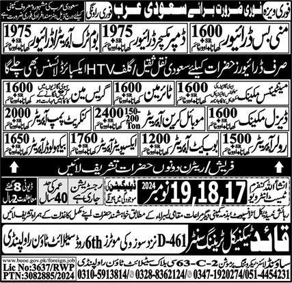 Concrete Pump Operator & Maintenance Mechanic Jobs 2024 announce the Contract career opportunities for the post of See Below Ad in Saudi Arabia for the fresh and experienced candidates on Contract basis who have Check Advertisement degree. Posted date of this post is 16/11/2024 and the last date is 19/11/2024. if you are eligible for this job apply before due date.