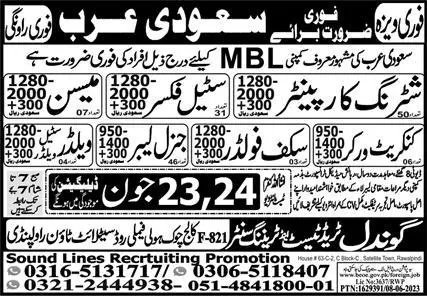 Concrete Worker & Scaffolder Jobs 2023 In Saudi Arabia announce the Contract career opportunities for the post of See Below Ad in Saudi Arabia for the fresh and experienced candidates on Contract basis who have Check Advertisement degree. Posted date of this post is 20/06/2023 and the last date is 24/06/2023. if you are eligible for this job apply before due date.