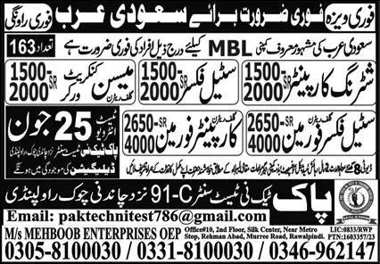 Concrete Worker & Steel Fixer Foreman Jobs 2023 In KSA announce the Contract career opportunities for the post of See Below Ad in Saudi Arabia for the fresh and experienced candidates on Contract basis who have Check Advertisement degree. Posted date of this post is 23/06/2023 and the last date is 25/06/2023. if you are eligible for this job apply before due date.