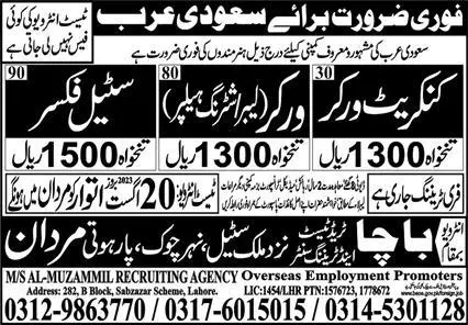 Concrete Worker & Steel Fixer Jobs 2023 In Saudi Arabia announce the Contract career opportunities for the post of See Below Ad in Saudi Arabia for the fresh and experienced candidates on Contract basis who have Check Advertisement degree. Posted date of this post is 17/08/2023 and the last date is 20/08/2023. if you are eligible for this job apply before due date.