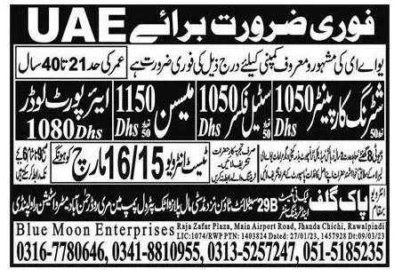Construction Staff Jobs in UAE 2023 announce the Contract career opportunities for the post of See Below Ad in United Arab Emirates for the fresh and experienced candidates on Contract basis who have Check Advertisement degree. Posted date of this post is 13/03/2023 and the last date is 16/03/2023. if you are eligible for this job apply before due date.