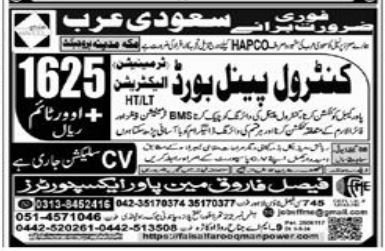 Control Panel Board Jobs in Saudia Arabia 2024 announce the Contract career opportunities for the post of See Below Ad in Saudi Arabia for the fresh and experienced candidates on Contract basis who have Check Advertisement degree. Posted date of this post is 12/05/2024 and the last date is 29/05/2024. if you are eligible for this job apply before due date.