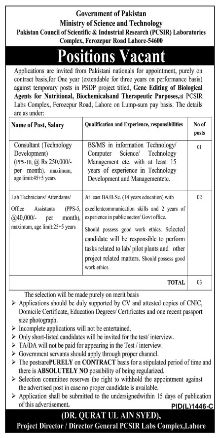 Council of Scientific & Industrial Research Punjab Jobs announce the Contract career opportunities for the post of check the advertisement in Pakistan,Lahore for the fresh and experienced candidates on Contract basis who have Check Advertisement degree. Posted date of this post is 18/11/2021 and the last date is 02/12/2021. if you are eligible for this job apply before due date.