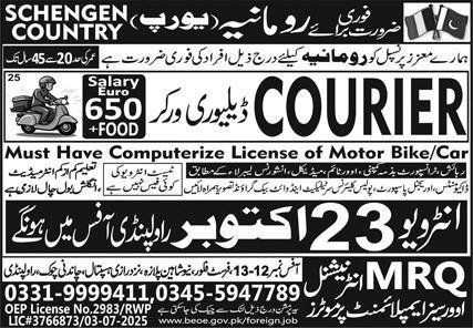 Courier Delivery Worker Jobs 2025 In Romania announce the Contract career opportunities for the post of See Below Ad in Romania for the fresh and experienced candidates on Contract basis who have Check Advertisement degree. Posted date of this post is 21/10/2025 and the last date is 23/10/2025. if you are eligible for this job apply before due date.