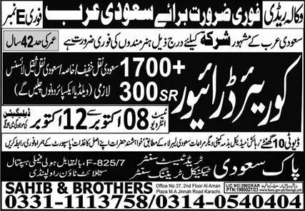 Courier Driver & Driver Jobs 2023 In Saudi Arabia announce the Contract career opportunities for the post of See Below Ad in Saudi Arabia for the fresh and experienced candidates on Contract basis who have Check Advertisement degree. Posted date of this post is 07/10/2023 and the last date is 12/10/2023. if you are eligible for this job apply before due date.