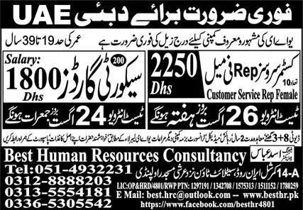 Customer Services Representative & Security Guard Jobs 2023 announce the Contract career opportunities for the post of See Below Ad in Dubai for the fresh and experienced candidates on Contract basis who have Check Advertisement degree. Posted date of this post is 23/08/2023 and the last date is 26/08/2023. if you are eligible for this job apply before due date.