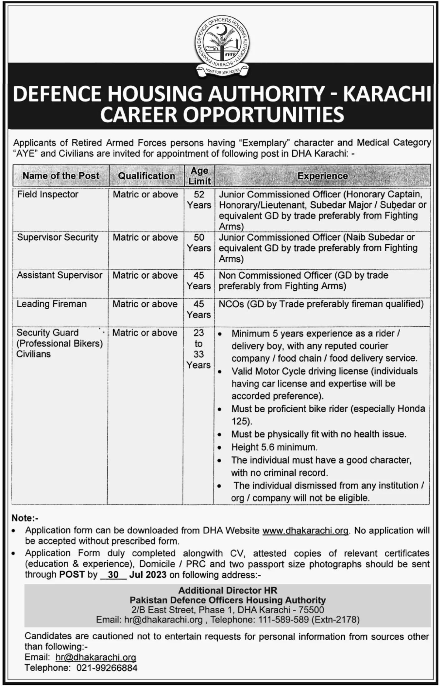 Defence Housing Authority DHA Karachi Jobs 2023 announce the Contract career opportunities for the post of See Below Ad in Sindh, Karachi for the fresh and experienced candidates on Contract basis who have Check Advertisement degree. Posted date of this post is 23/07/2023 and the last date is 30/07/2023. if you are eligible for this job apply before due date.