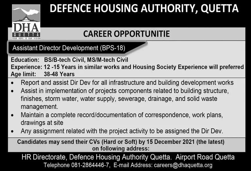 Defence Housing Authority DHA Quetta Jobs 2026