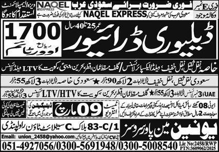 Delivery Driver & Driver Jobs 2026 In Saudi Arabia announce the Contract career opportunities for the post of See Below Ad in Saudi Arabia for the fresh and experienced candidates on Contract basis who have Check Advertisement degree. Posted date of this post is 07/03/2026 and the last date is 09/03/2026. if you are eligible for this job apply before due date.