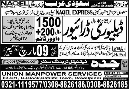 Delivery Driver & LTV Driver Jobs 2026 In Saudi Arabia announce the Contract career opportunities for the post of See Below Ad in Saudi Arabia for the fresh and experienced candidates on Contract basis who have Check Advertisement degree. Posted date of this post is 06/03/2026 and the last date is 09/03/2026. if you are eligible for this job apply before due date.