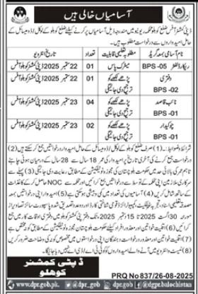 Deputy Commissioner Kohlu Jobs 2025 announce the Contract career opportunities for the post of See Below Ad in Balochistan,Kohlu for the fresh and experienced candidates on Contract basis who have Check Advertisement degree. Posted date of this post is 27/08/2025 and the last date is 15/09/2025. if you are eligible for this job apply before due date.