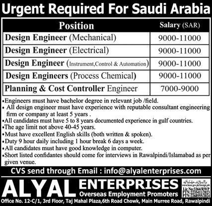 Design Engineer Mechanical & Design Engineer Electrical Jobs announce the Contract career opportunities for the post of See Below Ad in Saudi Arabia for the fresh and experienced candidates on Contract basis who have Check Advertisement degree. Posted date of this post is 23/01/2024 and the last date is 30/01/2024. if you are eligible for this job apply before due date.