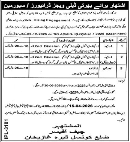 District Council Dera Ghazi Khan Job 2026 announce the Contract career opportunities for the post of See Below Ad in Punjab, Dera Ghazi Khan for the fresh and experienced candidates on Contract basis who have Check Advertisement degree. Posted date of this post is 03/04/2026 and the last date is 15/04/2026. if you are eligible for this job apply before due date.