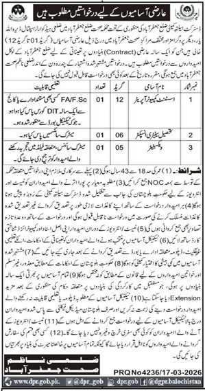 District Health Committee Jaffarabad Jobs 2026 announce the Contract career opportunities for the post of See Below Ad in Balochistan, Jafarabad for the fresh and experienced candidates on Contract basis who have Check Advertisement degree. Posted date of this post is 18/03/2026 and the last date is 02/04/2026. if you are eligible for this job apply before due date.