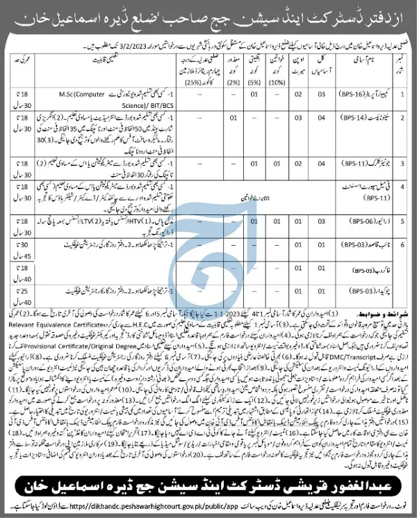 - Your applications should be submitted to the District & Session Judge Office, Dera Ismail Khan.