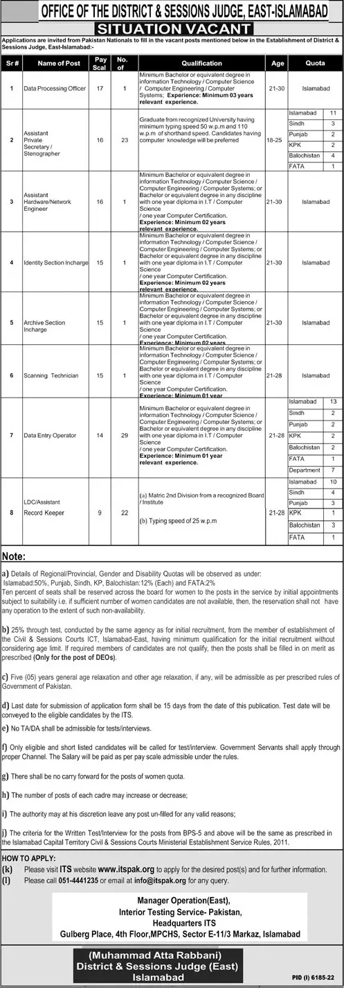 District & Session Judge East Islamabad Jobs 2023 announce the Contract career opportunities for the post of See Below Ad in Federal, Islamabad for the fresh and experienced candidates on Contract basis who have Check Advertisement degree. Posted date of this post is 09/04/2023 and the last date is 24/04/2023. if you are eligible for this job apply before due date.