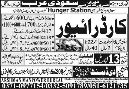 Driver & Car Driver Jobs Open In Saudi Arabia 2026 announce the Contract career opportunities for the post of See Below Ad in Saudi Arabia for the fresh and experienced candidates on Contract basis who have Check Advertisement degree. Posted date of this post is 09/04/2026 and the last date is 13/04/2026. if you are eligible for this job apply before due date.