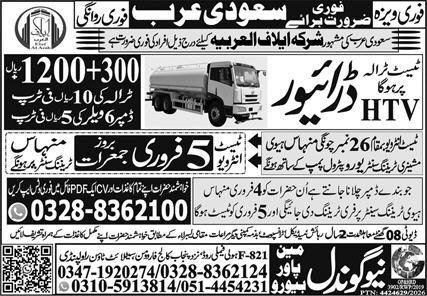 Driver & HTV Driver Jobs 2026 In Saudi Arabia announce the Contract career opportunities for the post of See Below Ad in Saudi Arabia for the fresh and experienced candidates on Contract basis who have Check Advertisement degree. Posted date of this post is 04/02/2026 and the last date is 05/02/2026. if you are eligible for this job apply before due date.
