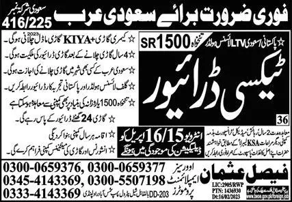 Driver & Taxi Driver Jobs 2023 in Saudi Arabia announce the Contract career opportunities for the post of See Below Ad in Saudi Arabia for the fresh and experienced candidates on Contract basis who have Check Advertisement degree. Posted date of this post is 14/04/2023 and the last date is 16/04/2023. if you are eligible for this job apply before due date.