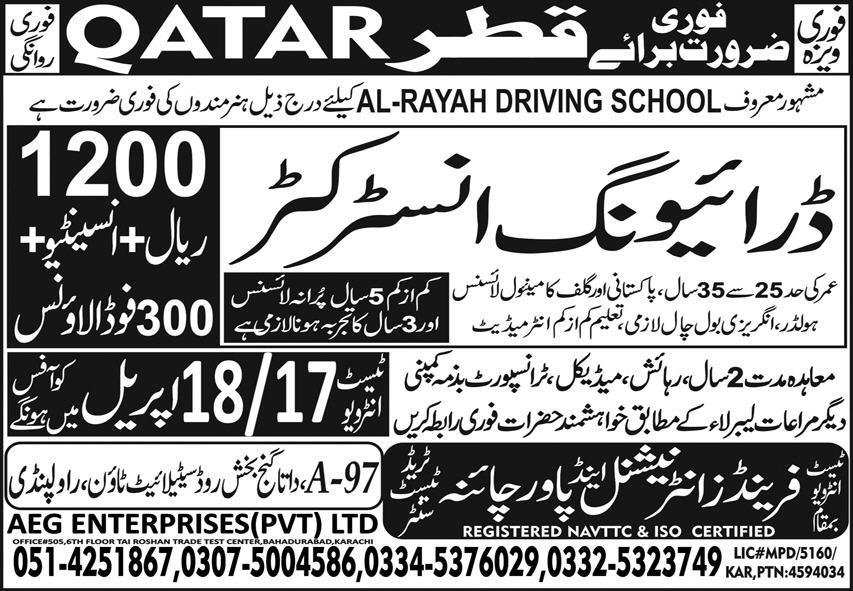 Driving Instructor Jobs In Qatar 2026 announce the Contract career opportunities for the post of See Below Ad in Qatar for the fresh and experienced candidates on Contract basis who have Check Advertisement degree. Posted date of this post is 12/04/2026 and the last date is 18/04/2026. if you are eligible for this job apply before due date.