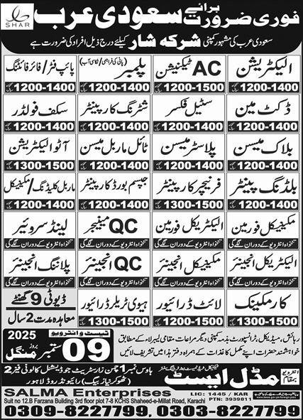 Ducket Man And Steel Fixer Jobs in Saudia Arabia 2025 announce the Contract career opportunities for the post of See Below Ad in Saudi Arabia for the fresh and experienced candidates on Contract basis who have Check Advertisement degree. Posted date of this post is 08/09/2025 and the last date is 09/09/2025. if you are eligible for this job apply before due date.