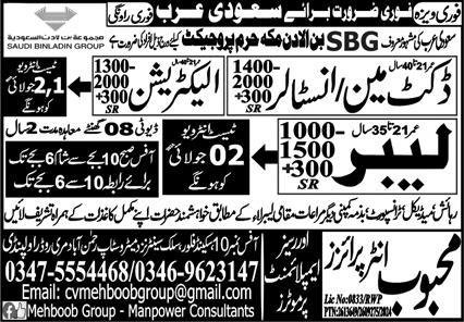 Duct Man Installer & Labor Jobs 2024 In Saudi Arabia announce the Contract career opportunities for the post of See Below Ad in Saudi Arabia for the fresh and experienced candidates on Contract basis who have Check Advertisement degree. Posted date of this post is 28/06/2024 and the last date is 02/07/2024. if you are eligible for this job apply before due date.