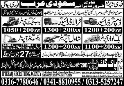 Dumper Driver & Excavator Operator Jobs 2024 Saudi Arabia announce the Contract career opportunities for the post of See Below Ad in Saudi Arabia for the fresh and experienced candidates on Contract basis who have Check Advertisement degree. Posted date of this post is 14/06/2024 and the last date is 27/06/2024. if you are eligible for this job apply before due date.