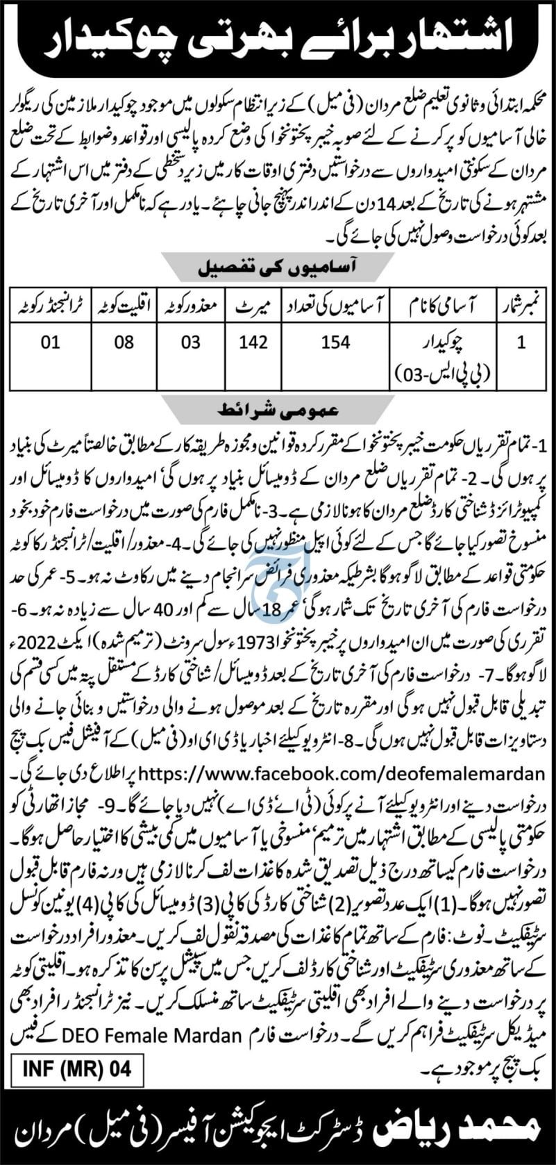Education Department Mardan Job 2026 announce the Contract career opportunities for the post of See Below Ad in Khyber Pakhtunkhwa, Mardan for the fresh and experienced candidates on Contract basis who have Check Advertisement degree. Posted date of this post is 13/02/2026 and the last date is 27/02/2026. if you are eligible for this job apply before due date.