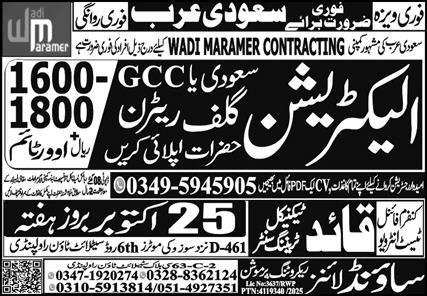 Electricain Jobs in Saudia Arabia 2025 announce the Contract career opportunities for the post of See Below Ad in Saudi Arabia for the fresh and experienced candidates on Contract basis who have Check Advertisement degree. Posted date of this post is 24/10/2025 and the last date is 25/10/2025. if you are eligible for this job apply before due date.