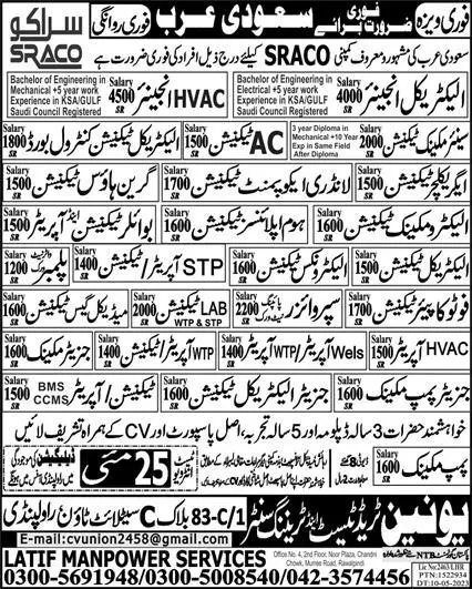 Electrical Engineer And Hvac Operator Jobs In Saudi Arabia announce the Contract career opportunities for the post of See Below Ad in Saudi Arabia for the fresh and experienced candidates on Contract basis who have Check Advertisement degree. Posted date of this post is 24/05/2023 and the last date is 25/05/2023. if you are eligible for this job apply before due date.