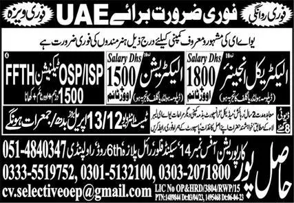 Electrical Engineer & Electrician Jobs 2023 in UAE announce the Contract career opportunities for the post of See Below Ad in United Arab Emirates for the fresh and experienced candidates on Contract basis who have Check Advertisement degree. Posted date of this post is 11/04/2023 and the last date is 13/04/2023. if you are eligible for this job apply before due date.