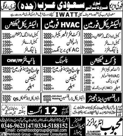 Electrical Technician & Cable Tray Fitter Jobs 2023 announce the Contract career opportunities for the post of See Below Ad in Saudi Arabia for the fresh and experienced candidates on Contract basis who have Check Advertisement degree. Posted date of this post is 08/08/2023 and the last date is 12/08/2023. if you are eligible for this job apply before due date.