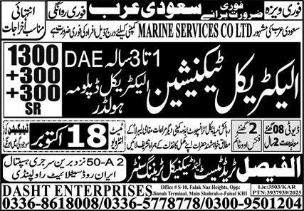 Electrical Technician & Electrical Diploma Holder Jobs 2025 announce the Contract career opportunities for the post of See Below Ad in Saudi Arabia for the fresh and experienced candidates on Contract basis who have Check Advertisement degree. Posted date of this post is 17/10/2025 and the last date is 18/10/2025. if you are eligible for this job apply before due date.
