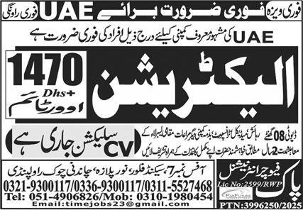 Electrician Jobs Open In UAE 2026 announce the Contract career opportunities for the post of See Below Ad in United Arab Emirates for the fresh and experienced candidates on Contract basis who have Check Advertisement degree. Posted date of this post is 08/01/2026 and the last date is 20/01/2026. if you are eligible for this job apply before due date.