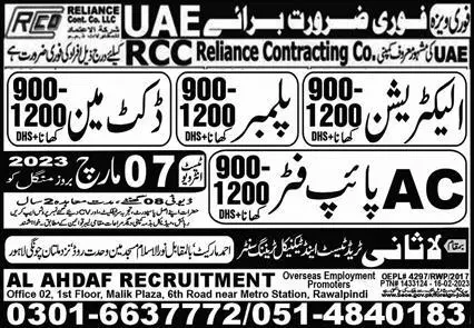 Electrician & Plumber Jobs 2023 in UAE announce the Contract career opportunities for the post of See Below Ad in United Arab Emirates for the fresh and experienced candidates on Contract basis who have Check Advertisement degree. Posted date of this post is 02/03/2023 and the last date is 07/03/2023. if you are eligible for this job apply before due date.