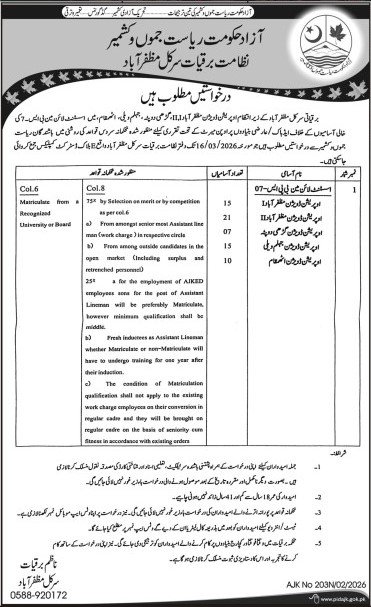 Electricity Department Muzaffarabad Jobs 2026 announce the Contract career opportunities for the post of See Below Ad in Azad Jammu Kashmir, Muzaffarabad for the fresh and experienced candidates on Contract basis who have Check Advertisement degree. Posted date of this post is 28/02/2026 and the last date is 06/03/2026. if you are eligible for this job apply before due date.