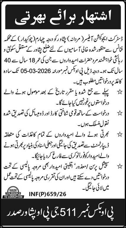 Elementary and Secondary Education Department ESED Jobs 2026 announce the Contract career opportunities for the post of See Below Ad in Azad Jammu Kashmir, Muzaffarabad for the fresh and experienced candidates on Contract basis who have Check Advertisement degree. Posted date of this post is 14/02/2026 and the last date is 05/03/2026. if you are eligible for this job apply before due date.