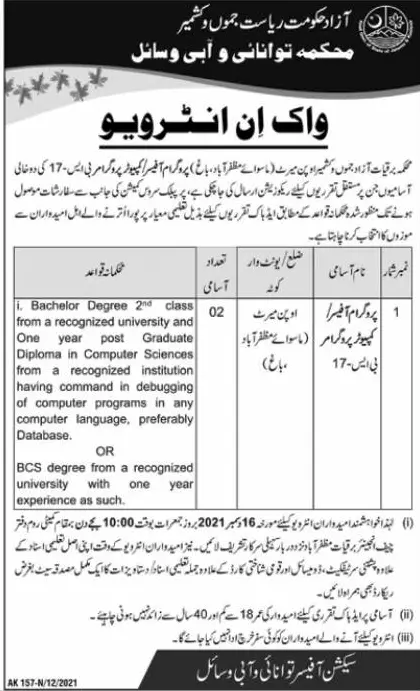 Elementary & Secondary Education Department kpk Jobs announce the Permanent career opportunities for the post of See Below Ad in Azad Jammu Kashmir for the fresh and experienced candidates on Permanent basis who have Check Advertisement degree. Posted date of this post is 09/12/2021 and the last date is 16/12/2021. if you are eligible for this job apply before due date.