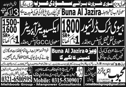 Excavator Operator & Heavy Truck Driver Jobs 2026 announce the Contract career opportunities for the post of See Below Ad in Saudi Arabia for the fresh and experienced candidates on Contract basis who have Check Advertisement degree. Posted date of this post is 26/03/2026 and the last date is 02/04/2026. if you are eligible for this job apply before due date.