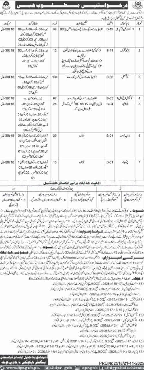 Excise Taxation & Narcotics Control Jobs 2025 announce the Contract career opportunities for the post of See Below Ad in Balochistan, Quetta for the fresh and experienced candidates on Contract basis who have Check Advertisement degree. Posted date of this post is 22/11/2025 and the last date is 11/12/2025. if you are eligible for this job apply before due date.