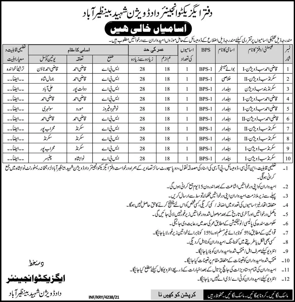 Executive Engineer Nawab shah Sindh Jobs announce the Permanent career opportunities for the post of check the advertisement in Sindh for the fresh and experienced candidates on Permanent basis who have Check Advertisement degree. Posted date of this post is 18/11/2021 and the last date is 02/12/2021. if you are eligible for this job apply before due date.