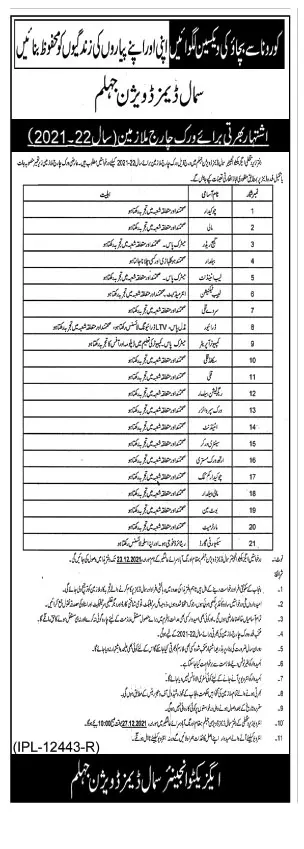Exuctive Engineer Samall Dams Division Jehlum Punjab Jobs announce the Contract career opportunities for the post of See Below Ad in Punjab for the fresh and experienced candidates on Contract basis who have Check Advertisement degree. Posted date of this post is 04/12/2021 and the last date is 22/12/2021. if you are eligible for this job apply before due date.