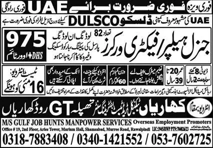 Factory Worker & General Helper Jobs 2023 In UAE announce the Contract career opportunities for the post of See Below Ad in United Arab Emirates for the fresh and experienced candidates on Contract basis who have Check Advertisement degree. Posted date of this post is 13/05/2023 and the last date is 16/05/2023. if you are eligible for this job apply before due date.