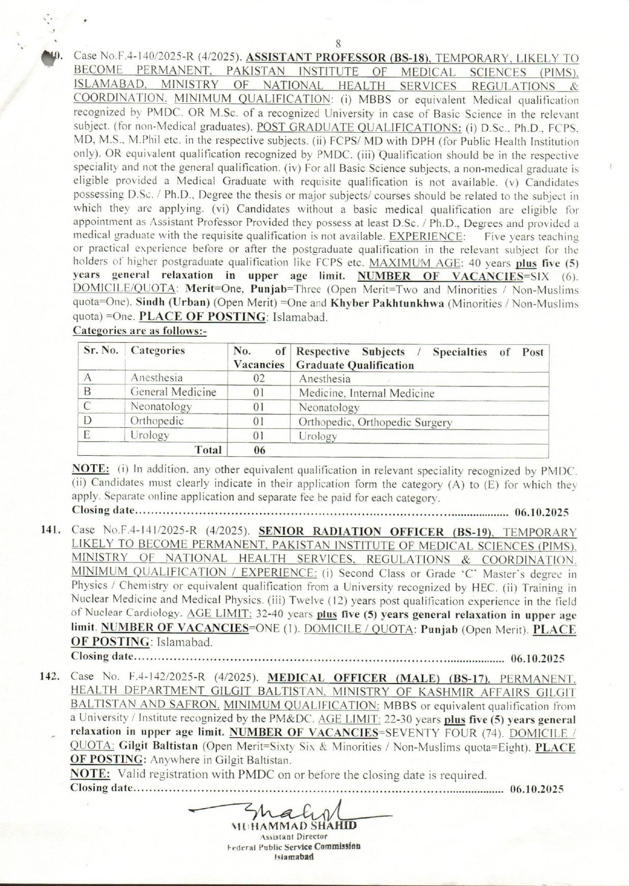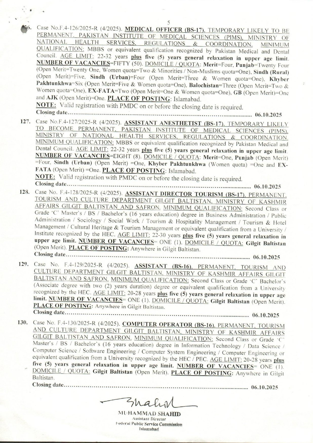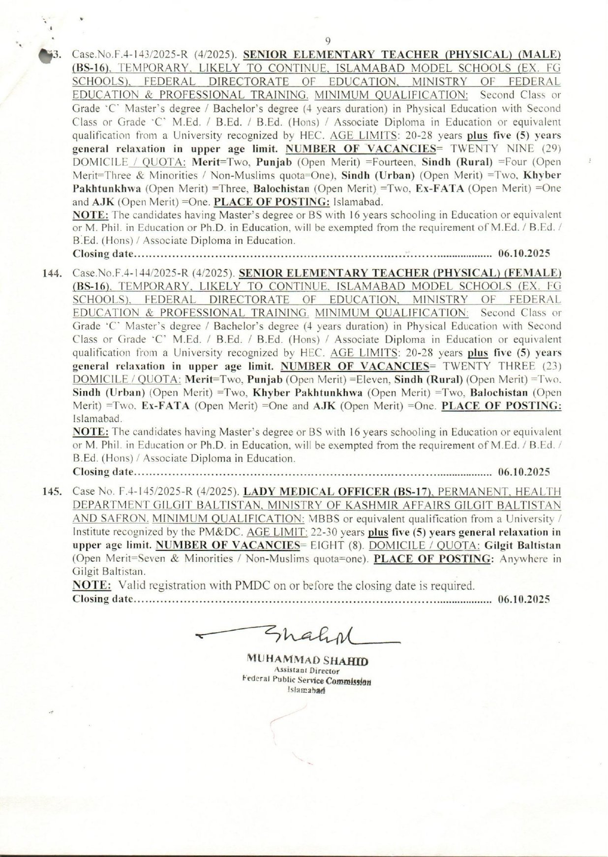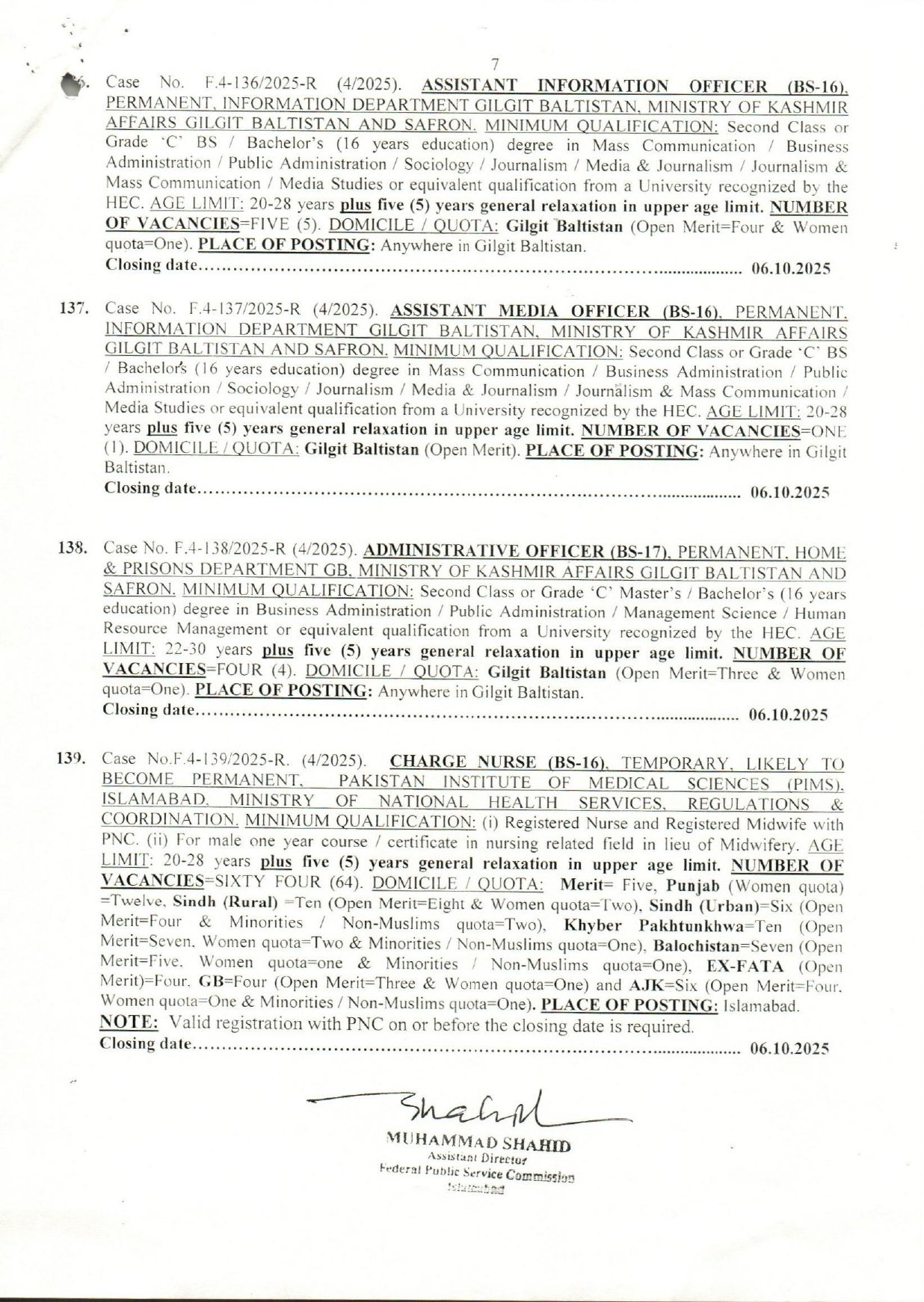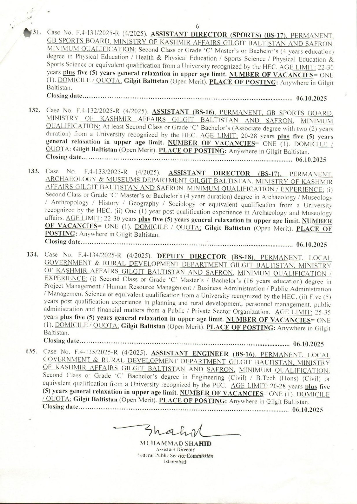 Federal Public service commission advertisement Jobs 04/2025 announce the Permanent career opportunities for the post of See Below Ad in Federal, Islamabad for the fresh and experienced candidates on Permanent basis who have Check Advertisement degree. Posted date of this post is 20/09/2025 and the last date is 06/10/2025. if you are eligible for this job apply before due date.
