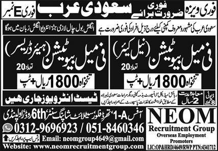 Female Beautician & Hair Dresser Jobs 2026 In Saudi Arabia announce the Contract career opportunities for the post of See Below Ad in Saudi Arabia for the fresh and experienced candidates on Contract basis who have Check Advertisement degree. Posted date of this post is 06/01/2026 and the last date is 13/01/2026. if you are eligible for this job apply before due date.