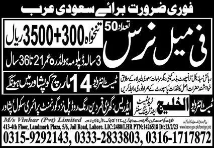 Female nurse Saudi Arabia Jobs 2023 announce the Contract career opportunities for the post of See Below Ad in Saudi Arabia for the fresh and experienced candidates on Contract basis who have Check Advertisement degree. Posted date of this post is 05/03/2023 and the last date is 14/03/2023. if you are eligible for this job apply before due date.