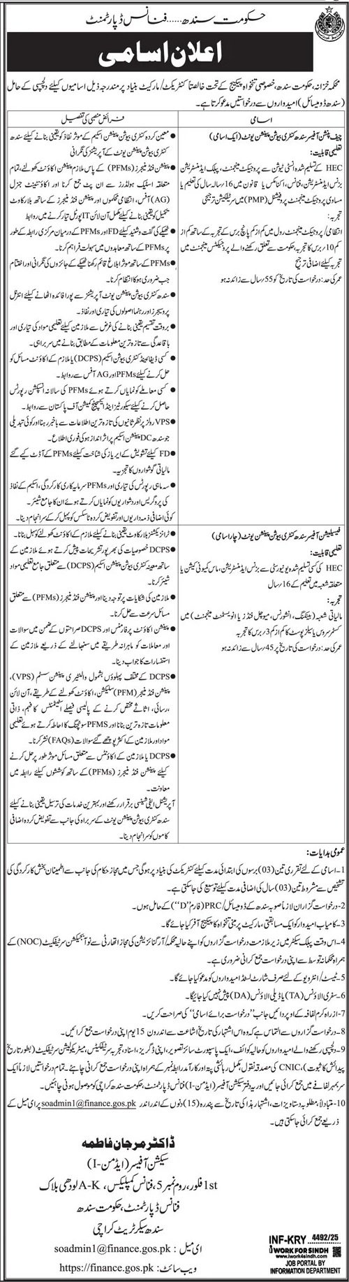 Finance Department Sindh Jobs 2026 announce the Contract career opportunities for the post of See Below Ad in Sindh, Karachi for the fresh and experienced candidates on Contract basis who have Check Advertisement degree. Posted date of this post is 28/12/2025 and the last date is 12/01/2026. if you are eligible for this job apply before due date.