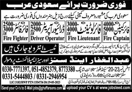 Fire Captain & Driver Operator Jobs In Saudi Arabia announce the Contract career opportunities for the post of See Below Ad in Saudi Arabia for the fresh and experienced candidates on Contract basis who have Check Advertisement degree. Posted date of this post is 03/09/2023 and the last date is 09/09/2023. if you are eligible for this job apply before due date.