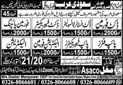 Foreman Piping & Duct Installer Jobs 2025 In Saudi Arabia announce the Contract career opportunities for the post of See Below Ad in Saudi Arabia for the fresh and experienced candidates on Contract basis who have Check Advertisement degree. Posted date of this post is 18/10/2025 and the last date is 21/10/2025. if you are eligible for this job apply before due date.